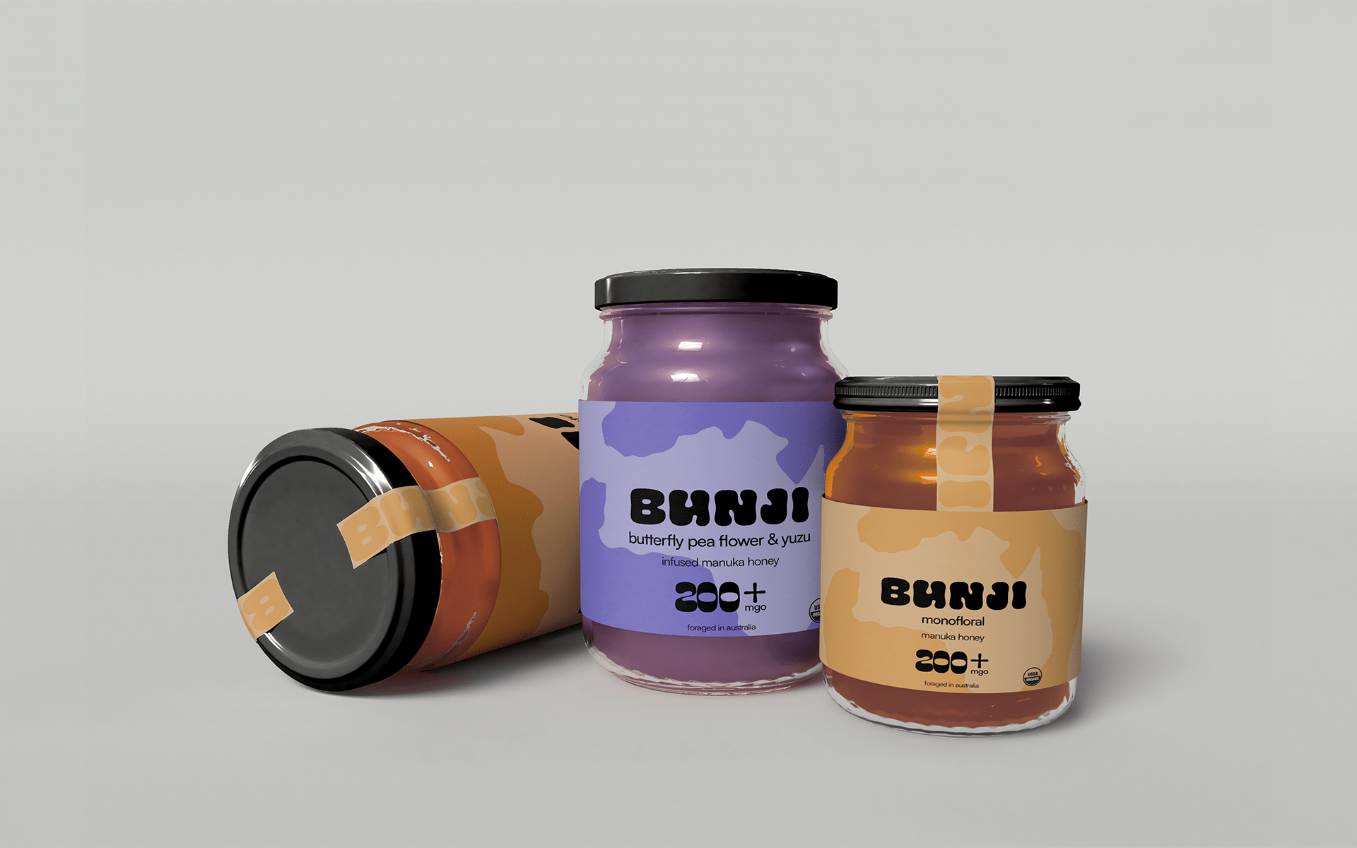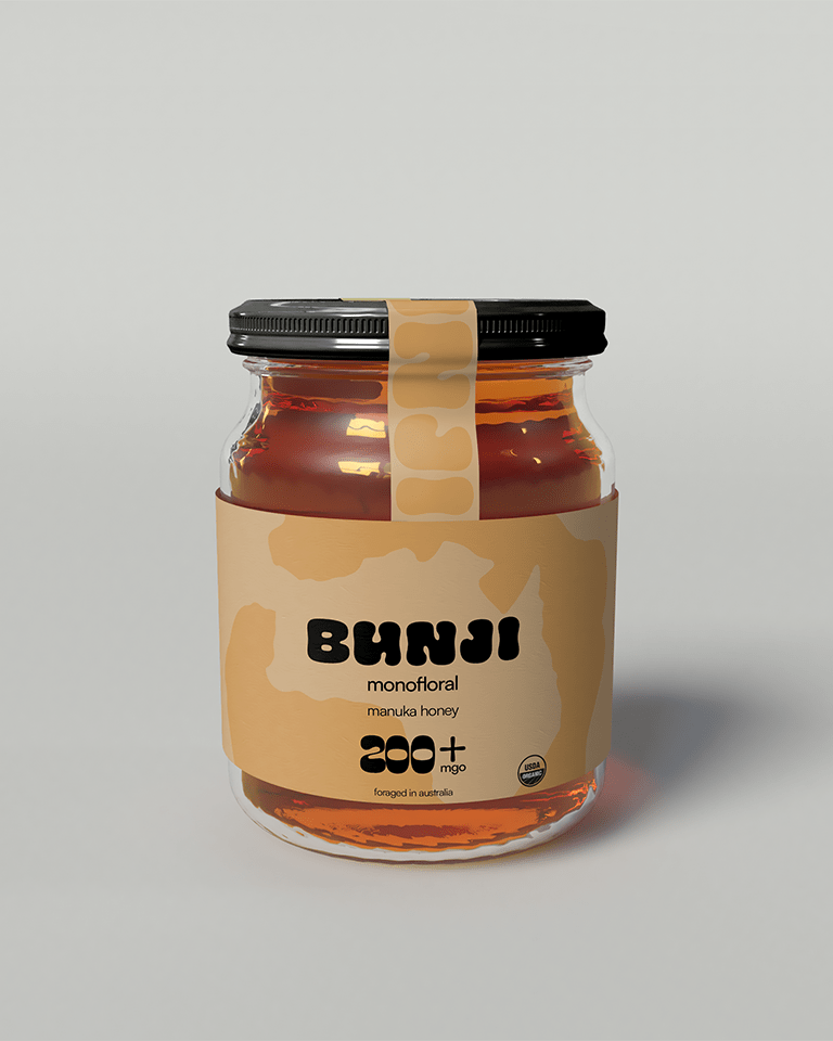 Bunji Mānuka was a college final assignment where we were tasked with designing a brand from the ground up. We had to design everything from deciding the product to naming the company and designing the packaging. I chose Mānuka honey and the name "Bunji" which means friend in Warlpiri.